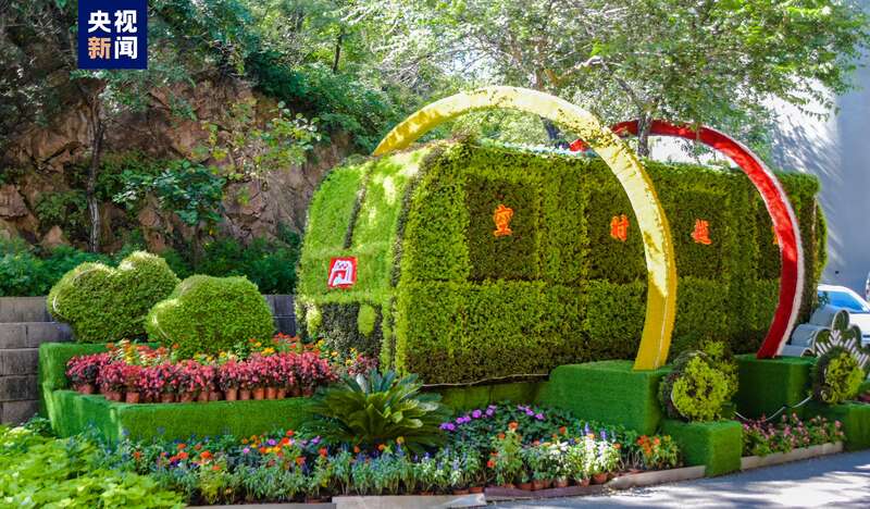 2023年中秋国庆佳节首日,为更好地迎接在此期间到达的游客,八达岭长城景区装扮焕然一新,应景的节日鲜花装点白天的景区,增添喜庆气氛。11万余盆花卉绿植,构成组合花坛15组,造型别致,赏心悦目。