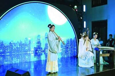 9月27日,“2023月圆中秋—中秋文化香港专场活动”在港举行。图为演员在表演民乐合奏《城里的月光》。新华社发