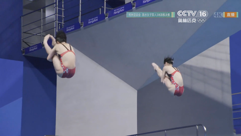 10月1日,杭州第19届亚运会跳水女子双人3米跳板比赛,中国组合陈艺文/昌雅妮以335.73分夺得金牌。
