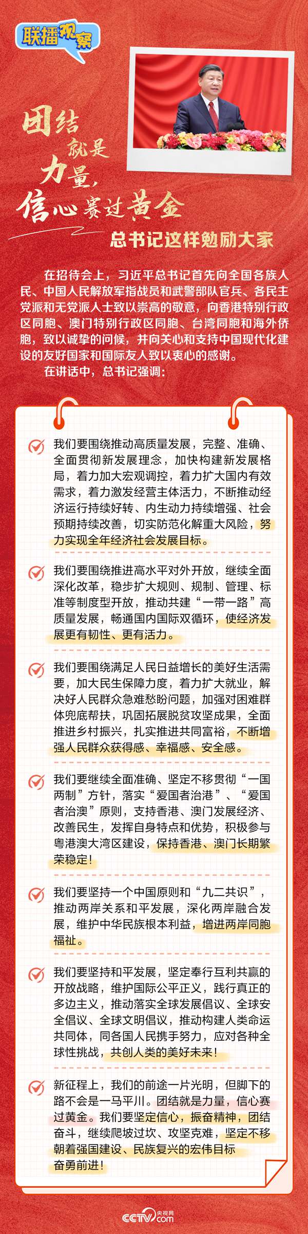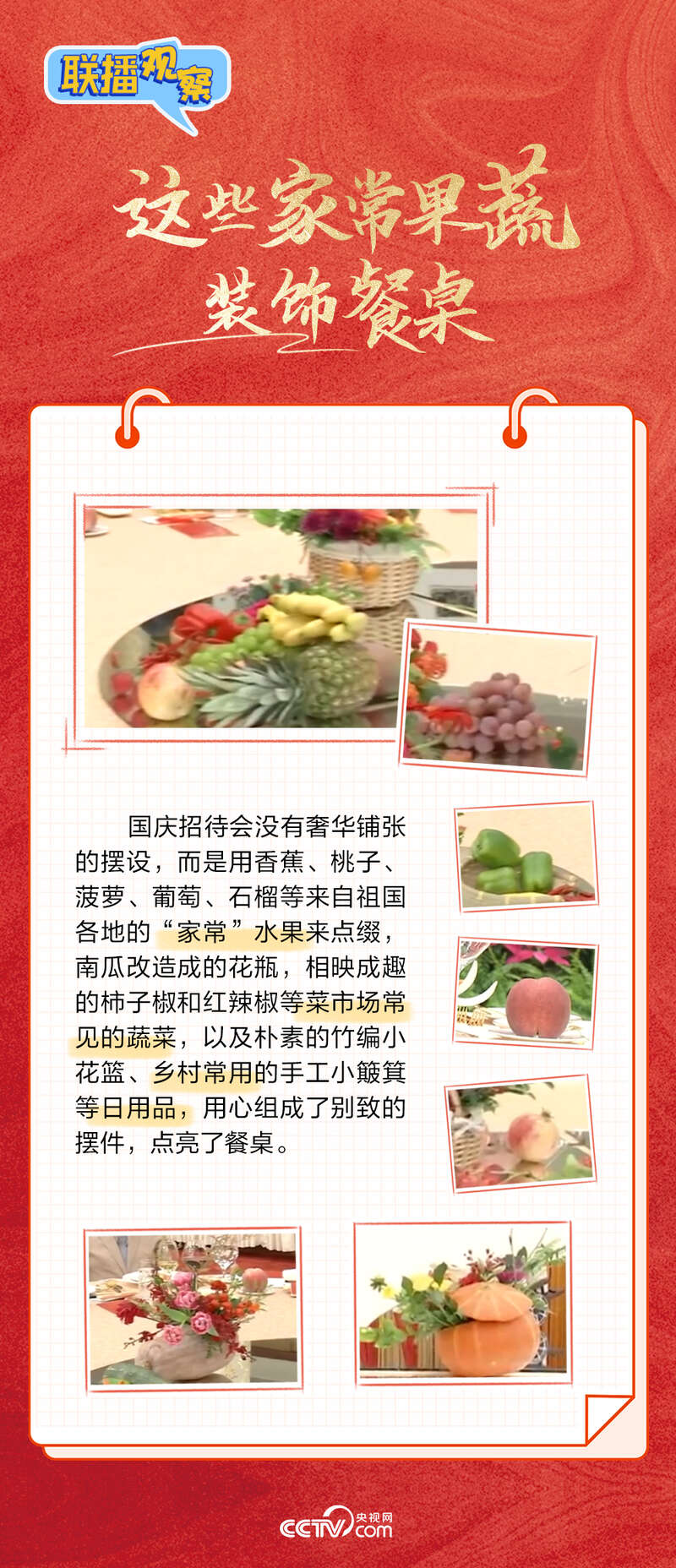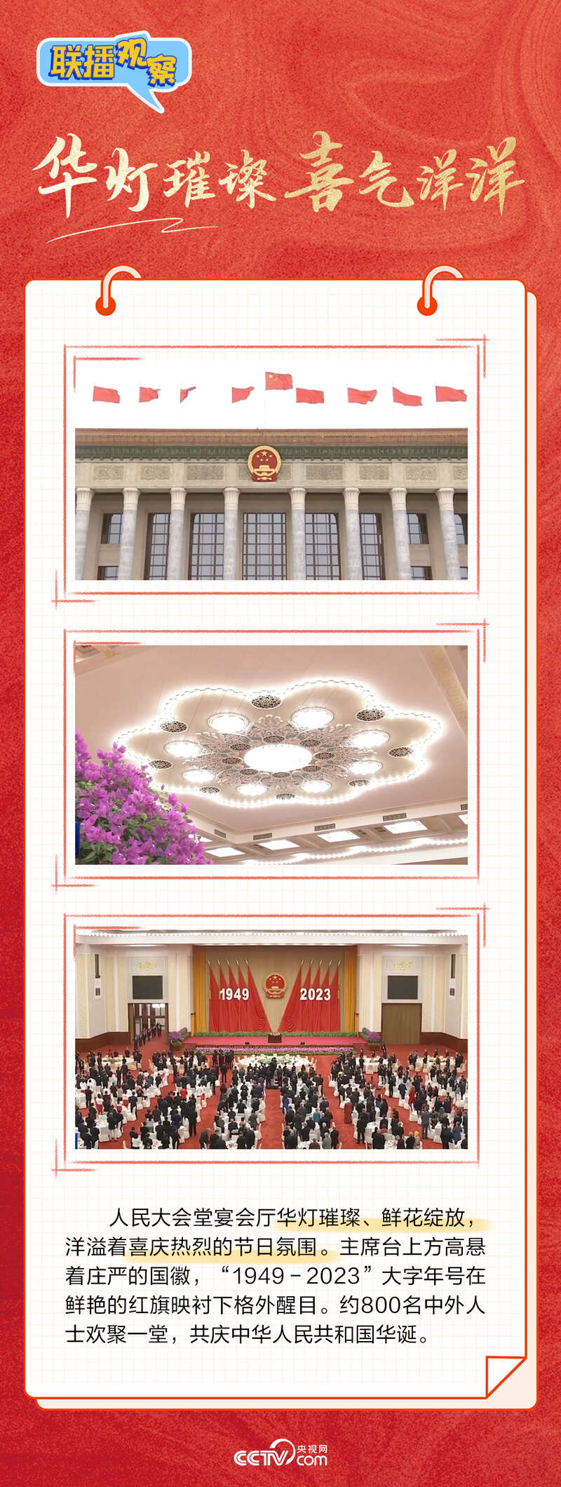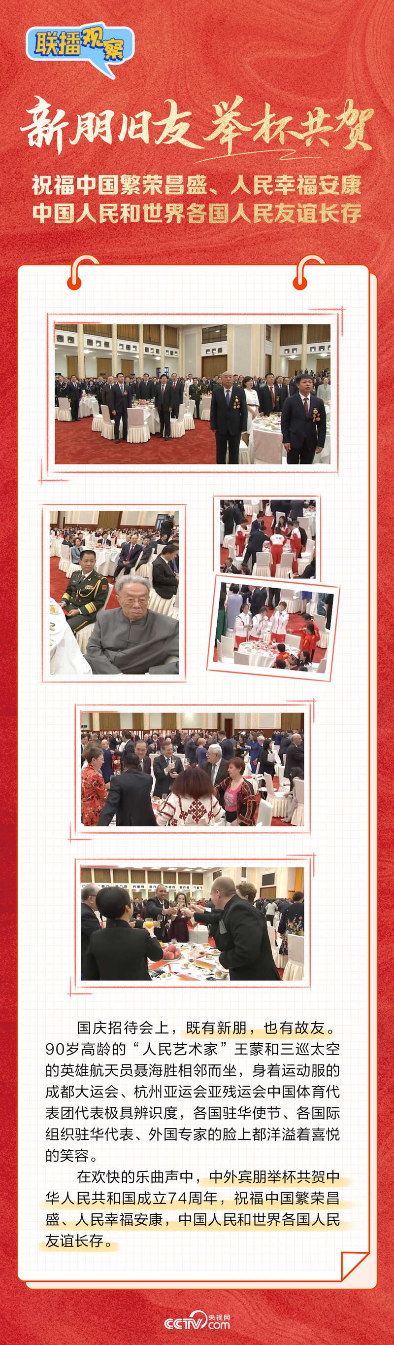 在欢快的乐曲声中,中外宾朋举杯共贺中华人民共和国成立74周年。作为一场“简约而不简单”的高规格国宴,习近平总书记在讲话中强调了哪些重点内容?国庆招待会的餐桌有哪些亮点细节?都有哪些新朋旧友出现在招待会上?央视网《联播观察》与您一同“云参会”。