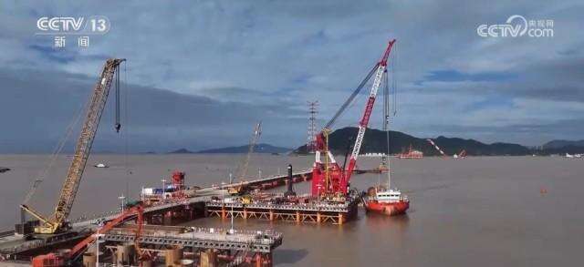 跨海桥梁施工酣 公铁两用新通道