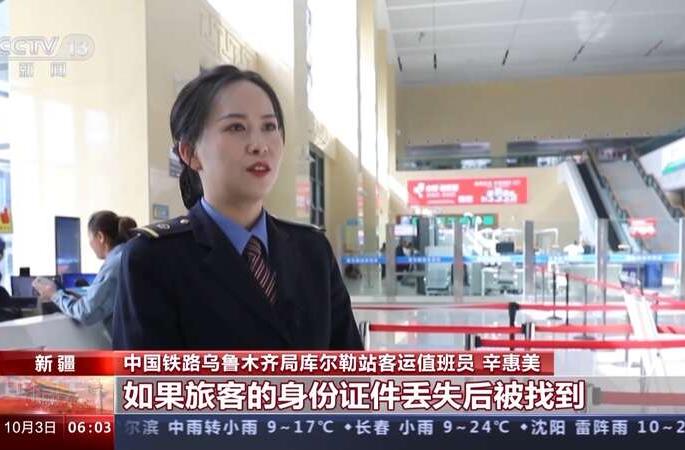 中国铁路乌鲁木齐局库尔勒站客运值班员 辛惠美:如果旅客的身份证件丢失后被找到,我们会及时地将信息录入12306后台系统,如果旅客在12306上绑定过手机号,12306就会通过短信通知旅客,到指定的车站领取。