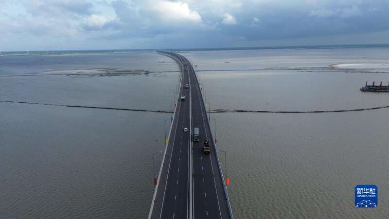 这是孟加拉国首都达卡西南约40公里处的帕德玛大桥(2023年6月25日摄)。孟加拉国最大桥梁项目——帕德玛大桥是连接中国及“泛亚铁路”的重要通道之一。