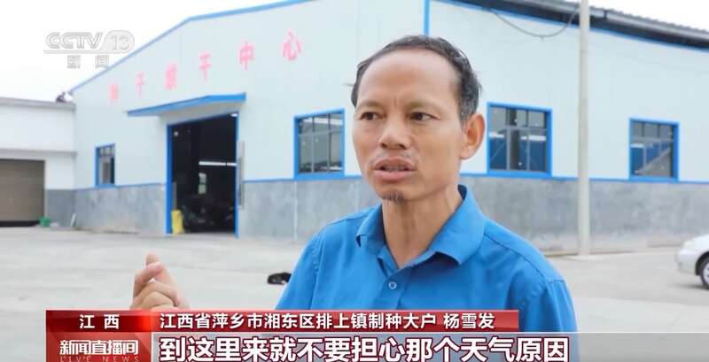 江西省萍乡市湘东区排上镇制种大户 杨雪发:到这里来就不用担心天气原因,安全性比较高。如果碰到下雨,进了烘干场,可以说是进了保险公司一样,没有后顾之忧。