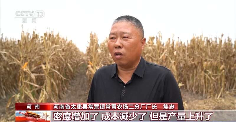 河南省太康县常营镇常青农场二分厂厂长 焦忠:密度增加了,成本减少了,产量上升了,比着往年增加了800多斤,确实很高兴。