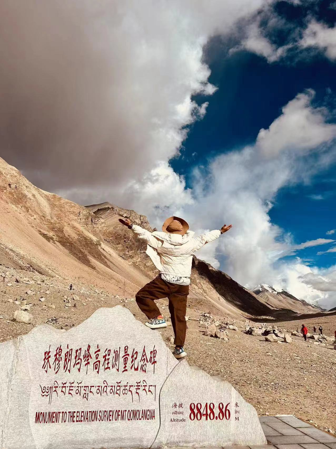 “站在布达拉宫的脚下,我有一种梦想完满的感觉,但也感觉到自己的渺小。布达拉宫从唐朝修建至今,站在它面前,我像是站在中华浩瀚的历史面前”,缘崽在布达拉宫游览过后又匆匆上路。到达珠峰大本营时已是两天后的早晨,一路上看尽高原的辽阔宏伟。