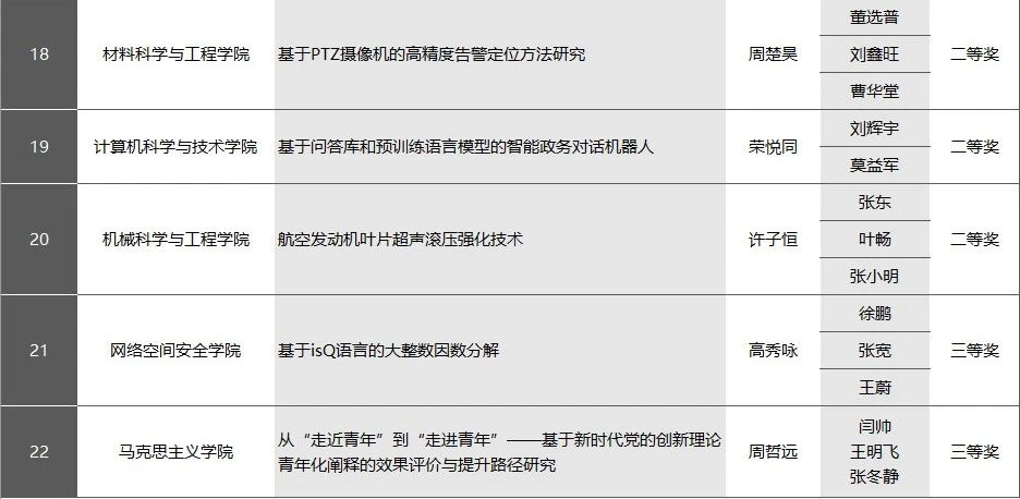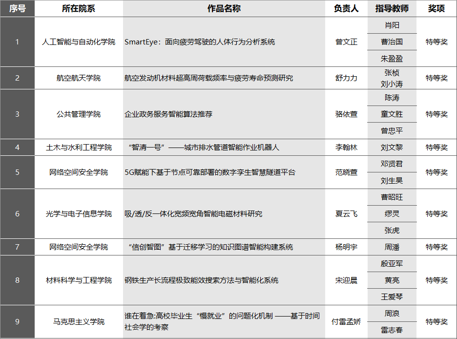 本届“揭榜挂帅”专项赛共有近2000件作品参赛,最终来自全国230余所高校的700余件作品入围终审。终审决出特等奖105个、一等奖122个、二等奖132个、三等奖140个,获“特等奖”的作品团队将进入预计10月底举行的“擂台赛”,全力冲刺“竞榜”,争夺“擂主”。