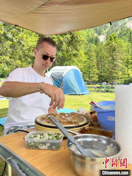 托比和朋友户外聚会,做煎饼果子。受访者供图