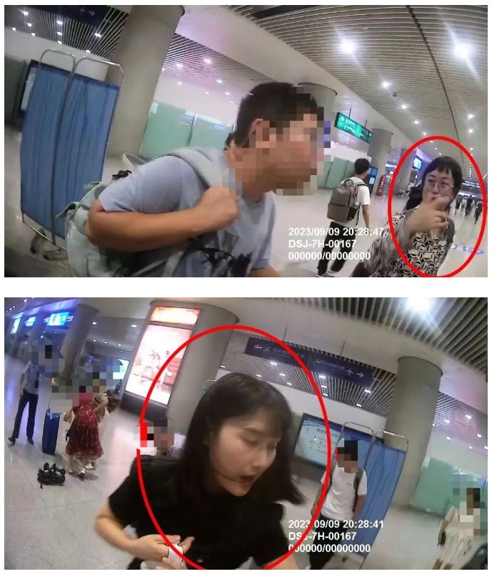 图为经孔先生请地铁方提供的照片,圈出的为两位助人者