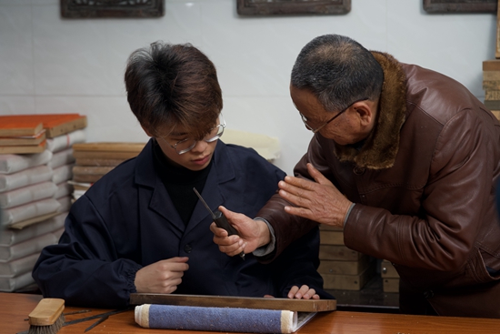 出生于雕版世家的朱旭从初中开始,就利用寒暑假,跟随祖父和母亲学习雕版印刷技艺。作为这项世界级非物质文化遗产的第五代传承人,朱旭从小耳濡目染,“看得多了,也会有感情,就想自己画图、自己雕刻。”在他心里,成为非遗传承人,不仅出于年轻一辈的使命感,更融入了热爱。