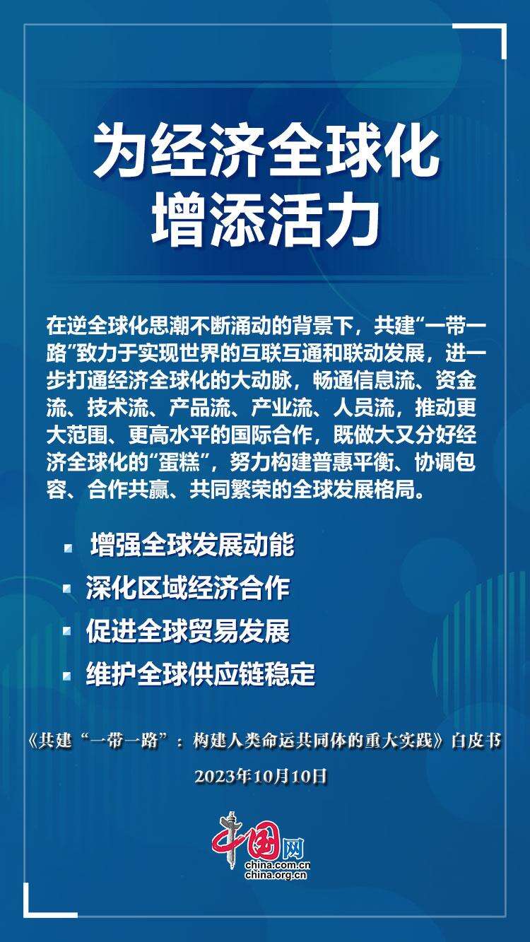 白皮书指出,10年来,共建“一带一路”取得显著成效,开辟了世界经济增长的新空间,搭建了国际贸易和投资的新平台,提升了有关国家的发展能力和民生福祉,为完善全球治理体系拓展了新实践,为变乱交织的世界带来更多确定性和稳定性。共建“一带一路”,既发展了中国,也造福了世界。