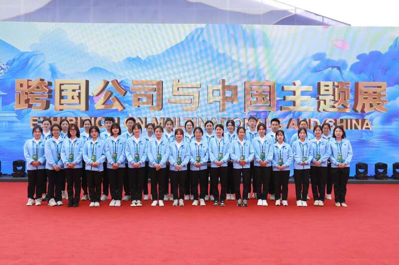 参加第四届跨国公司领导人青岛峰会的部分青年志愿者合影。 团青岛市委供图