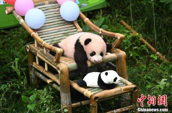 中新网记者 陈超 摄 10月13日,重庆动物园为新生大熊猫宝宝举行“百日宴”,大熊猫宝宝也正式与游客见面。活动现场,熊猫“奶爸”在户外摆放了不少玩具,作为百天礼物供它玩耍,熊猫宝宝在游客面前萌态十足。图为大熊猫宝宝玩耍毛绒玩具。