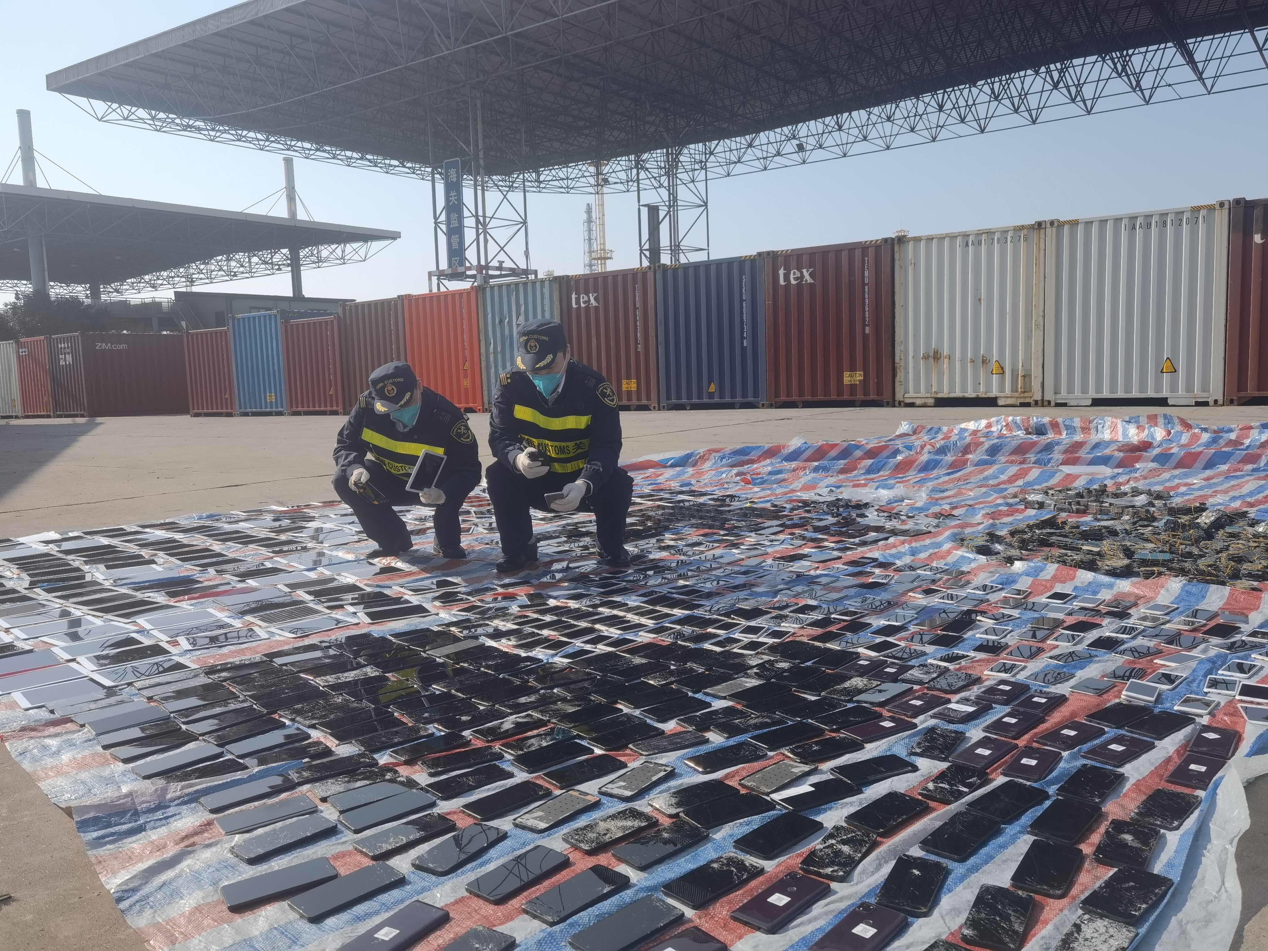 上海外高桥港区海关查获电子用品洋垃圾。郭升阳 摄
