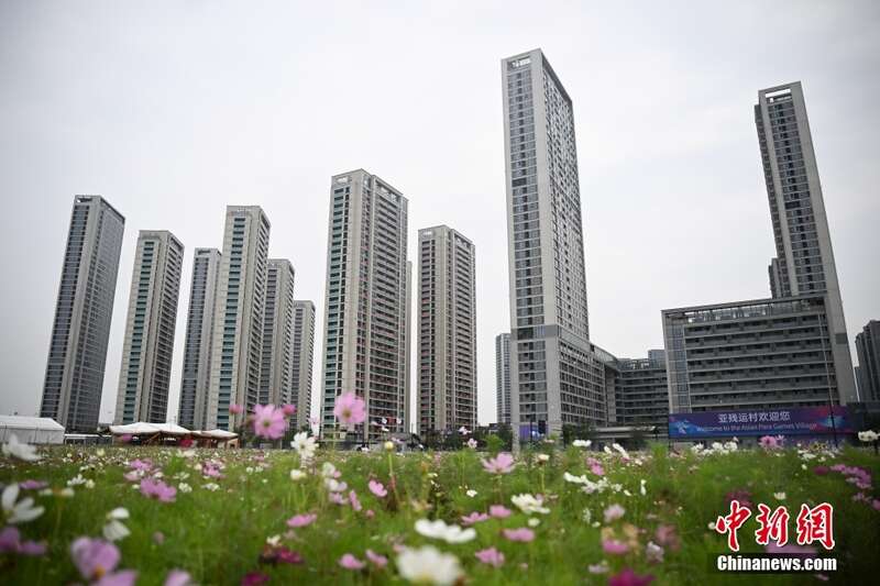 10月14日,浙江杭州亚残运村外鲜花盛放。当日,杭州亚残运村预开村。亚残运村由杭州亚运村媒体村转换而来,地上建筑面积72.2万平方米,赛时可为代表团提供3446套住宿房间,根据赛时运行划分为国际区、居住区和运行区。中新社记者 王刚 摄