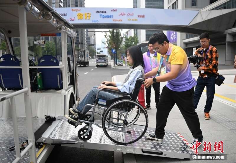 工作人员展示无障碍接驳车。中新社记者 王刚 摄