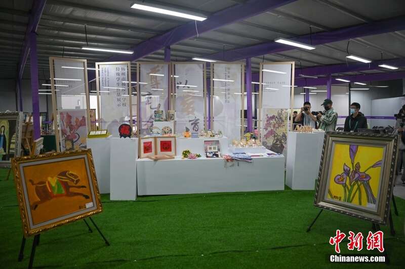 浙江杭州亚残运村分级综合中心内展示着残障人士的画作。中新社记者 王刚 摄
