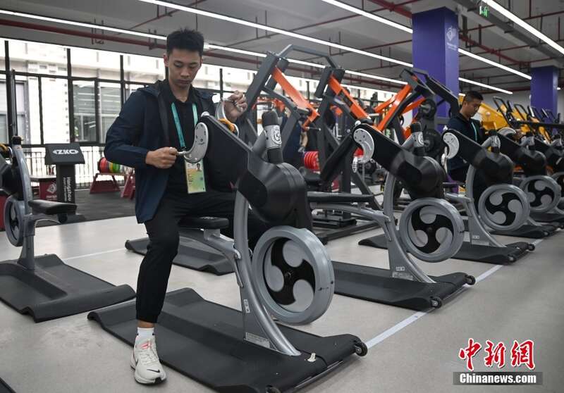 工作人员展示亚残运村健身中心内为残障人士配备的健身设施。中新社记者 王刚 摄