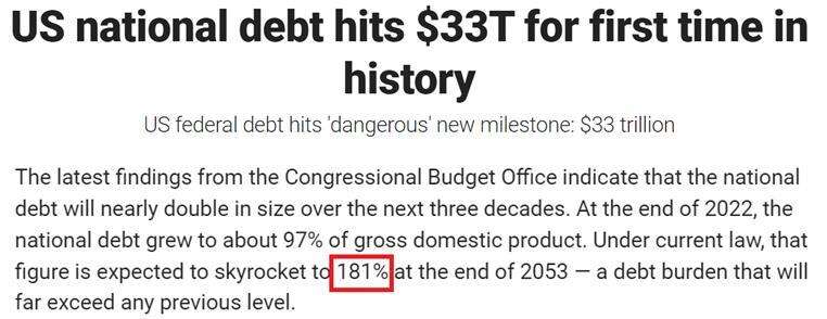 一个月前,美国联邦政府债务总额首次超过33万亿美元。虽然这对于素来“靠债吃饭”的美国来说不算新鲜,但今非昔比的是,以往的举债大多发生在低利率时期。而随着去年3月美国本轮加息周期的开始,不断上升的利率水平正使美国的债务成本越来越高。