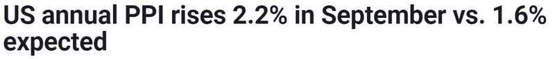 而美国劳工部此前一天公布的数据显示,美国9月生产者价格指数环比上涨0.5%,同比上涨2.2%,连续第三个月同比上涨。