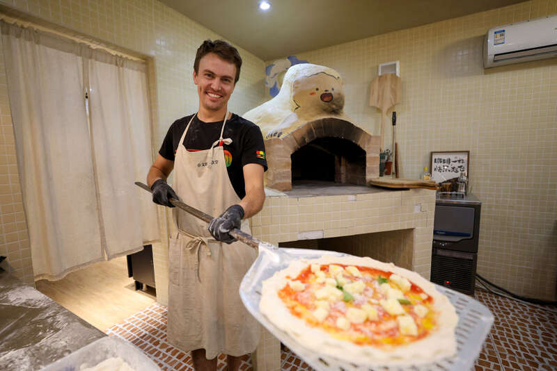 “在南溪南村开店,是因为向往徽州田园生活,没想到生意这么火,每天披萨供不应求。”卓文说。隔壁开店的当地人老吴,和卓文是“铁哥们”。