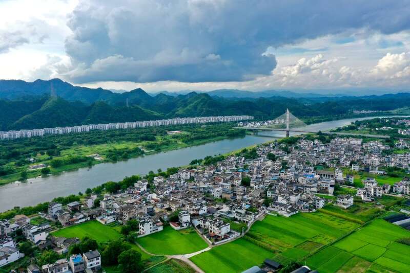 这是9月20日拍摄的安徽省黄山市屯溪区南溪南村(无人机照片)。新华社发(潘成 摄)