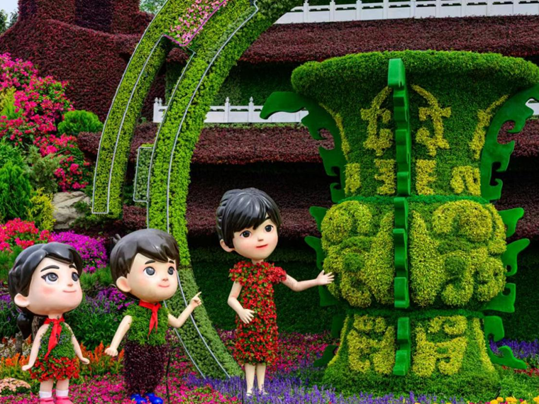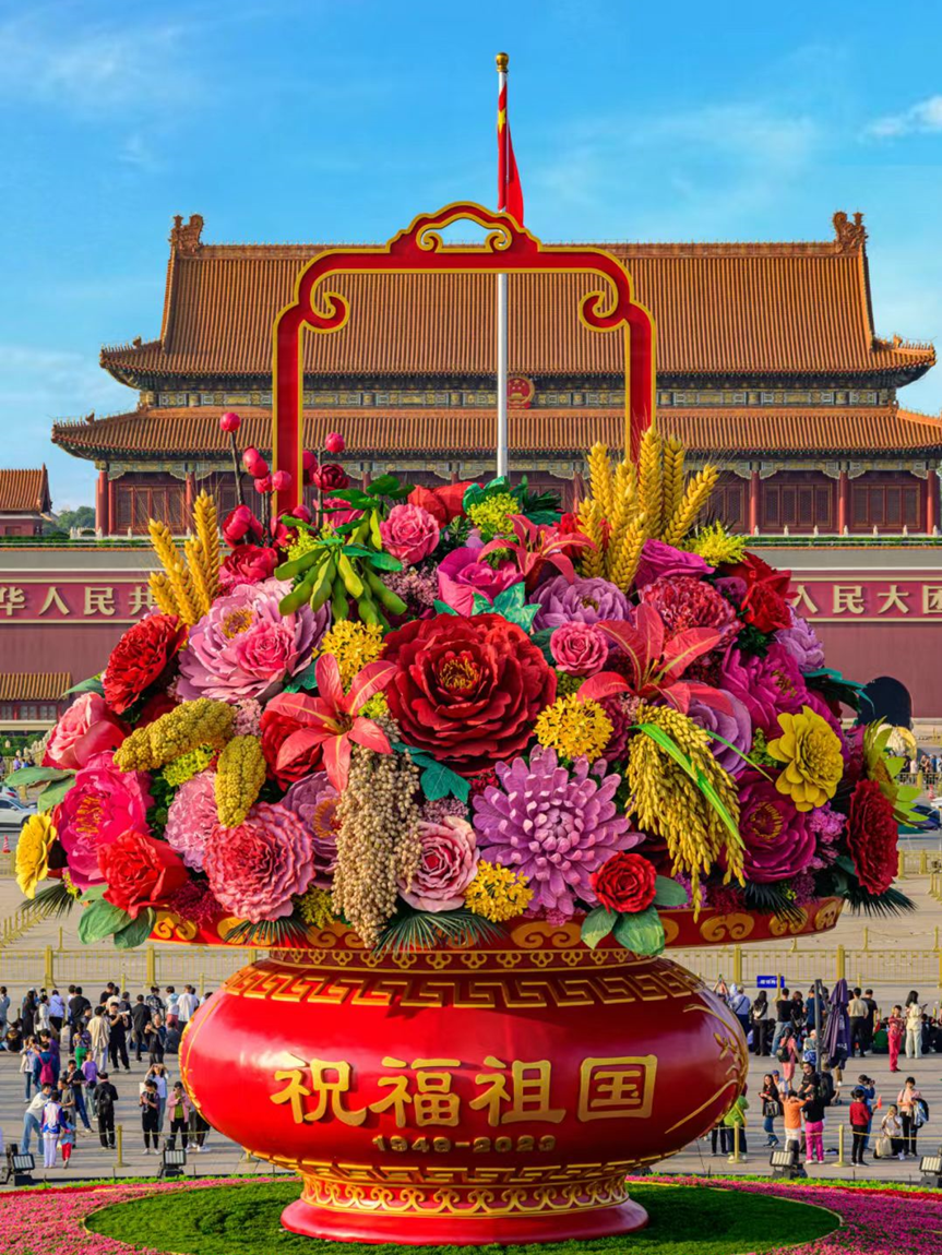 长安街鲜花造型和天安门巨型花篮