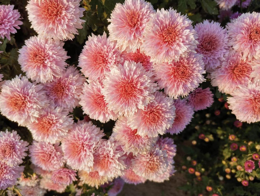 “糖果粉”菊花和“炽焰”月季