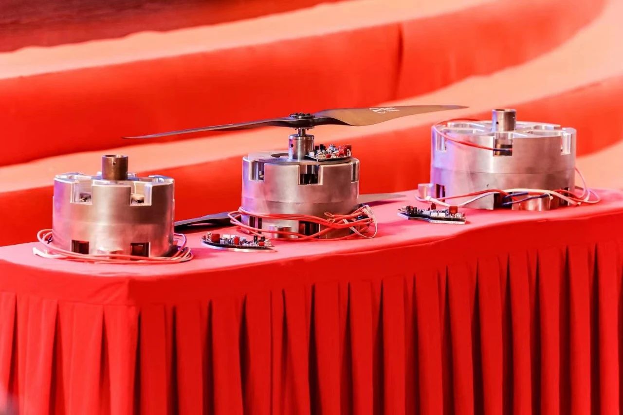 该款产品在电机结构和电调设计上进行了颠覆传统技术的创新,将电机和电调结合在一起,实现了电机电调一体化,有效化解了当下工业无人机反应慢、延迟长的痛点。在电机结构上创新性地采用定子单线绕组技术,能够极力压榨材料的物理特性。在电调设计上则利用IGBT配合正弦波进行输出,使电调能够舍弃正弦波控制器,减轻电机重量。通过实现电机电调一体化,该款产品的功率重量比达到了前所未有的6.66kW/kg。欧洲科学院院士、世界无人机大会主席杨金才在致辞中表示:这是我国工业无人机领域具有重大技术突破的创新产品。