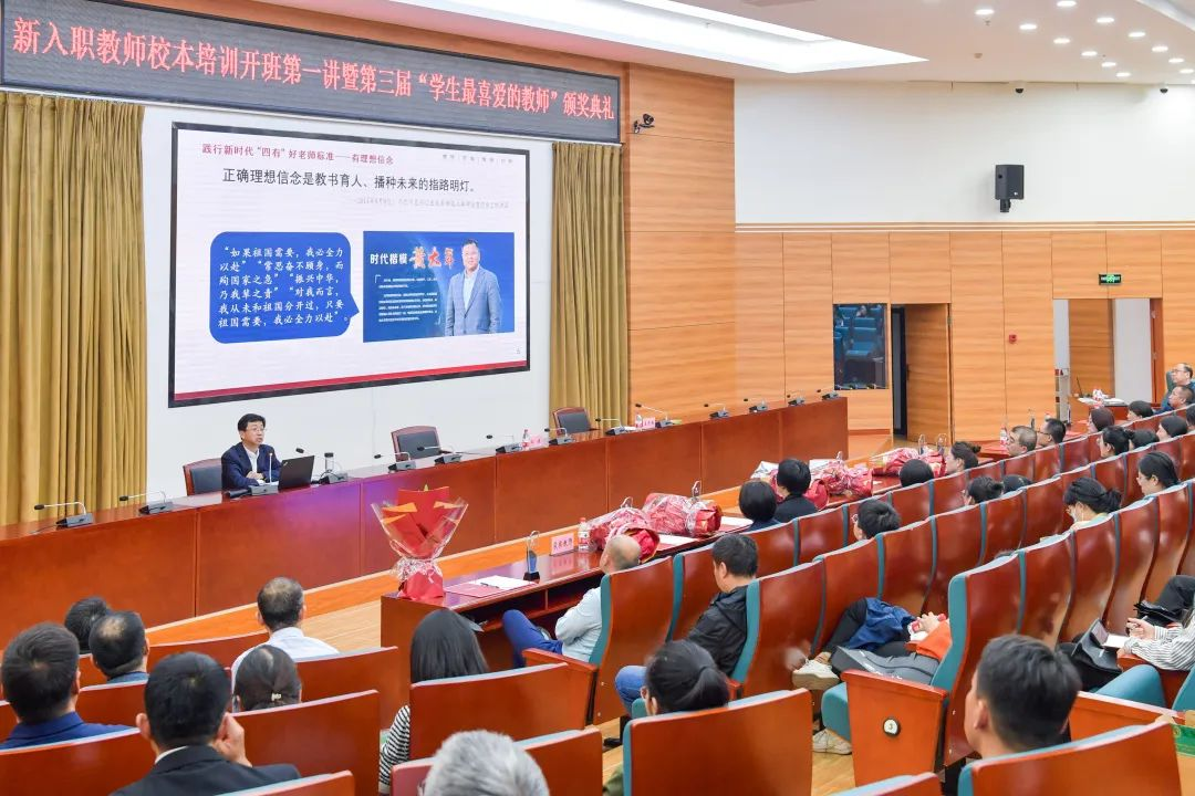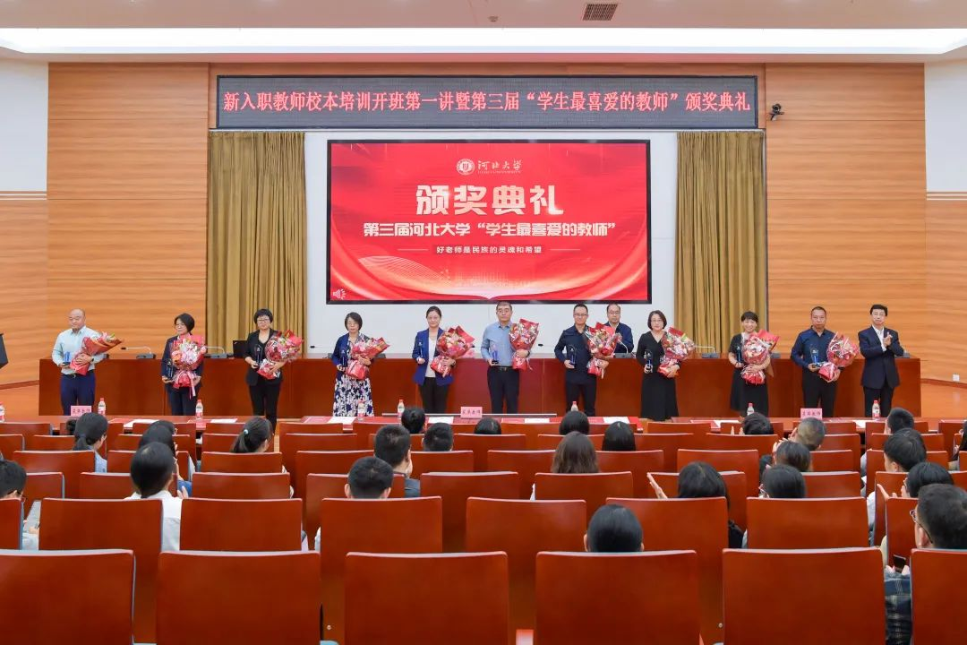 10月12日,河北大学举行了2023年新入职教师校本培训开班第一讲暨第三届“学生最喜爱的教师”颁奖典礼。党委书记郭健出席会议为获奖教师颁奖并作主题报告,党委常委、副校长孟庆瑜主持。