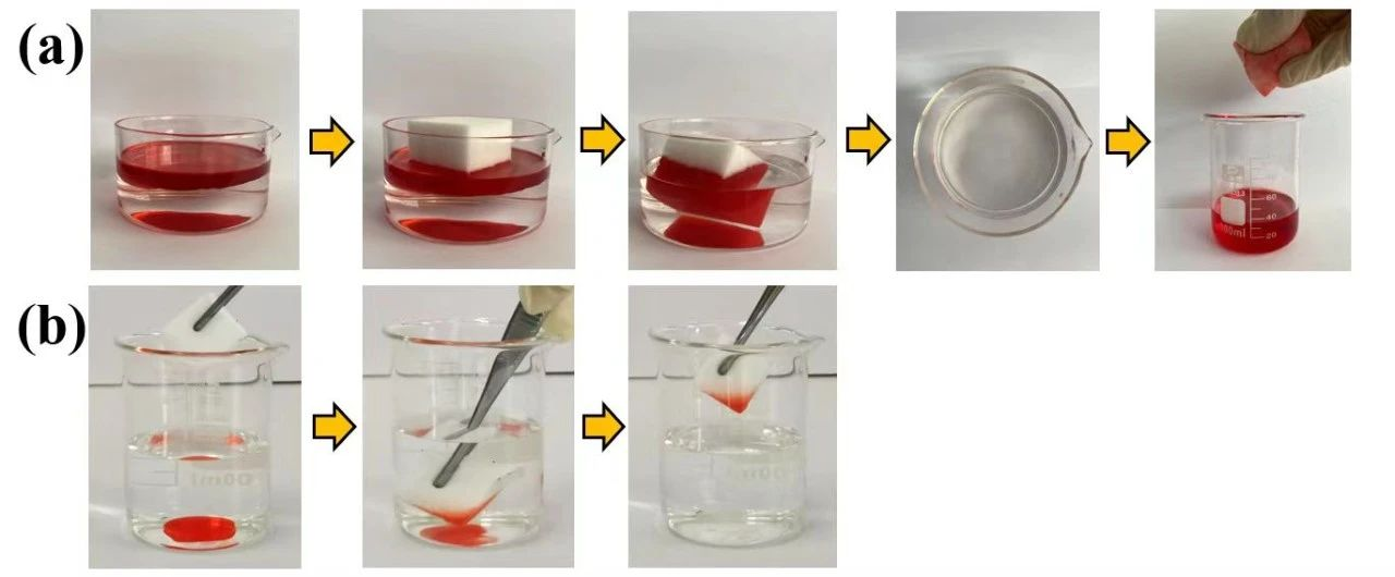 解决了这个问题后,他们顺利地制备出了一种具有高效油水分离性能的超疏水海绵。这款海绵可吸收自身重量160倍的有机溶剂和油类,能广泛应用于海洋环境,实现吸附溢油的分离回收。同时,其优异的性能以及简便的制备工艺,在溢油事故处理方面将展现出巨大的潜力。
