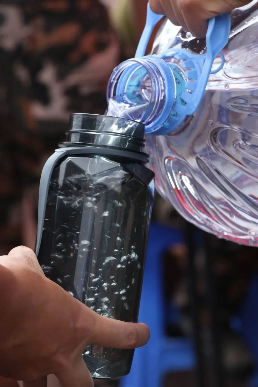 教官的一句“停止训练,开始休息”,让新生们迎来了短暂的休息时间。一排接着一排地去喝水。后勤的同学们及时拿出准备好的纸杯和水保障大家的需求,尽管有时水会因为太阳的暴晒失去原本的清凉,但小娜觉得“即使是热水,喝起来也很舒服。”