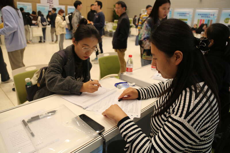 10月16日,“纳才进高校 就业在昌平”第五届“英才聚昌”校园双选会现场。(主办方供图)