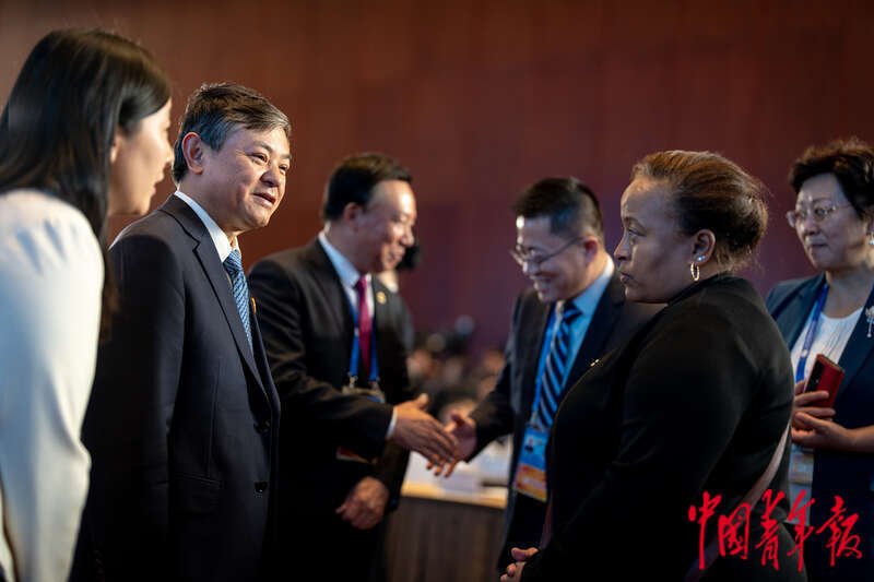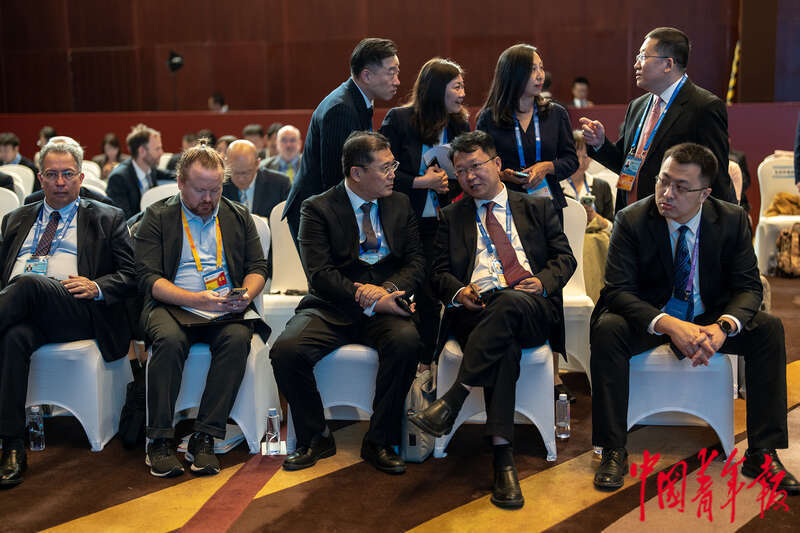 10月18日下午,北京国家会议中心,第三届“一带一路”国际合作高峰论坛绿色发展高级别论坛会场,参会代表在论坛开始前交流。中青报·中青网记者 李隽辉/摄
