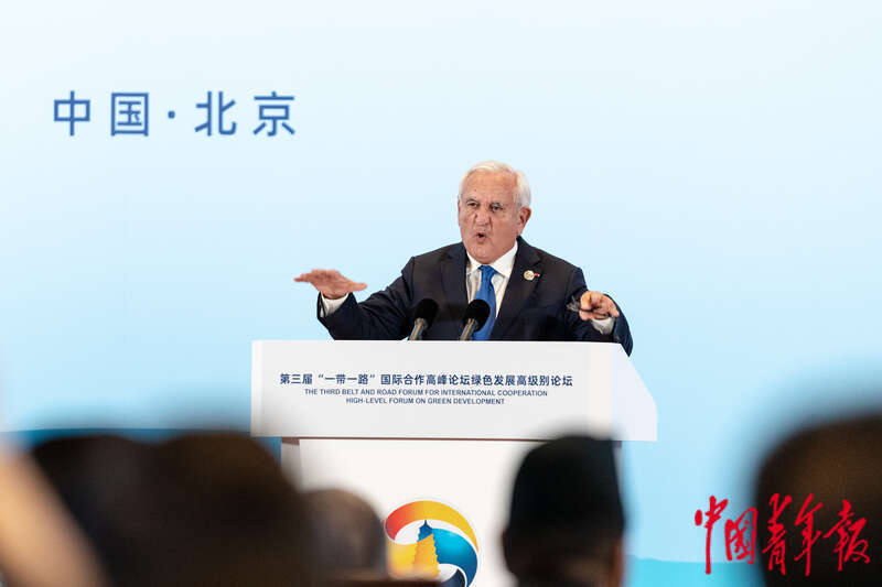 当日下午,生态环境部与国家发展改革委在国家会议中心共同举办绿色发展高级别论坛,共有来自40多个国家和地区的400余名嘉宾参会。论坛聚焦“共建绿色丝路 促进人与自然和谐共生”主题,助力实现全球绿色低碳可持续发展。在共建“一带一路”倡议提出10周年之际,论坛发布了三项成果,分别为“一带一路”绿色发展北京倡议、绿色发展投融资合作伙伴关系以及中亚区域绿色科技发展行动计划。中青报·中青网记者 李隽辉/摄