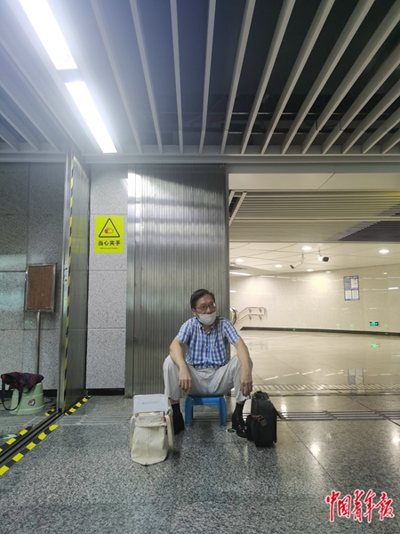 他选择在地铁站卖书是因为这里的人流密集,不像广场上“人四面八方散开”,这里也没有汽车尾气污染,“春夏秋冬都能卖”。
