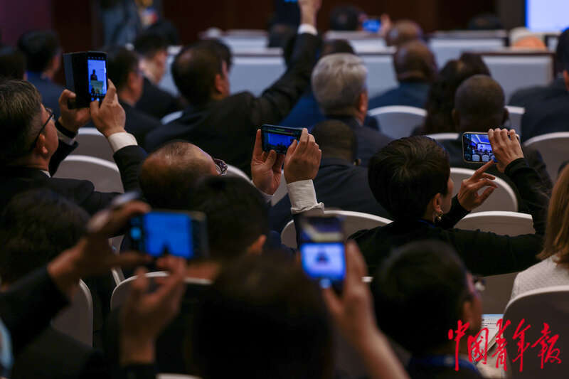 10月18日,北京国家会议中心,第三届“一带一路”国际合作高峰论坛贸易畅通专题论坛上,参会嘉宾拍照记录。中青报·中青网记者 曲俊燕/摄