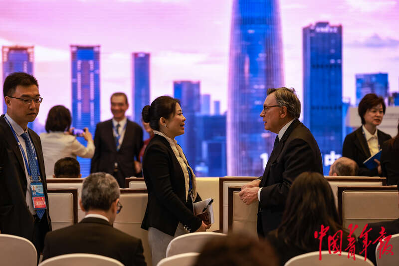 10月18日,北京国家会议中心,第三届“一带一路”国际合作高峰论坛贸易畅通专题论坛开始前,参会嘉宾在交流。中青报·中青网记者 曲俊燕/摄