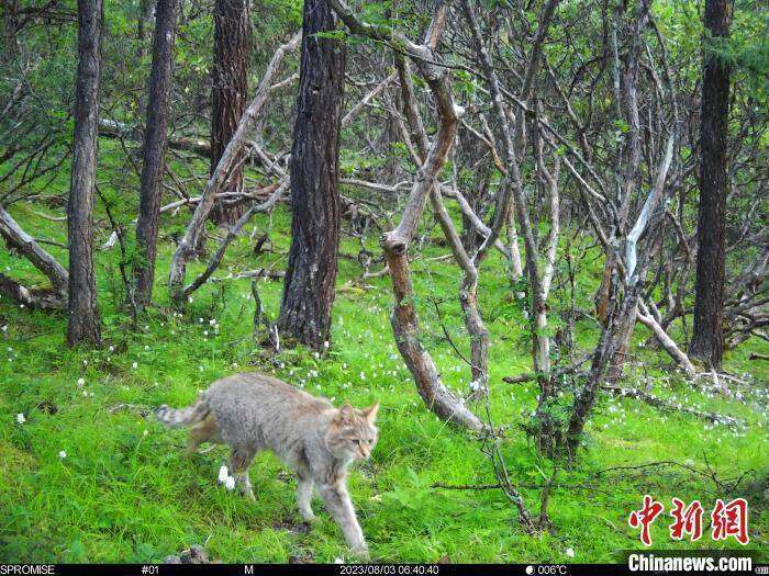 红外相机拍摄到的荒漠猫影像。达古冰川管理局供图
