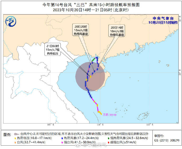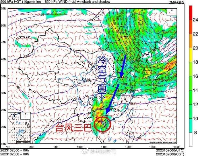 不过,随着冷空气进一步深入台风核心,将迫使“三巴”调头往南走,预计明天华南的降水明显减弱。