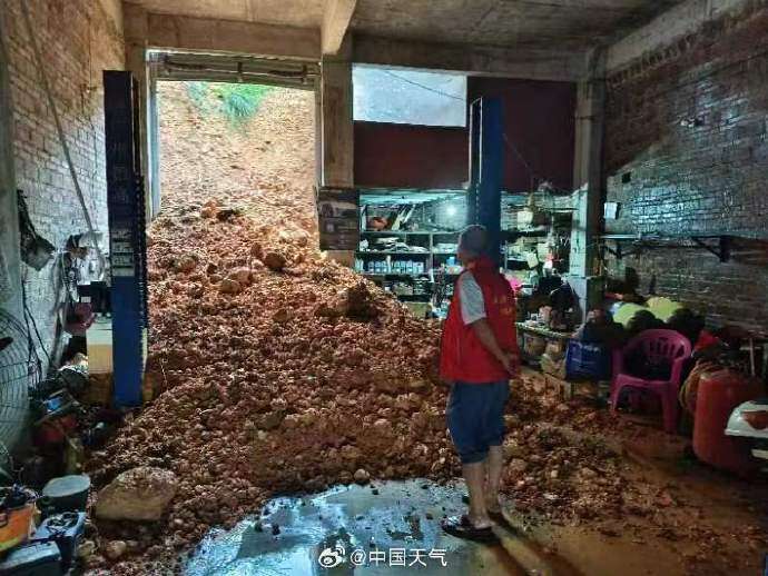 20日广西玉林市博白县文地镇文地村山体滑坡,山石冲入民居。 拍摄:黄耀