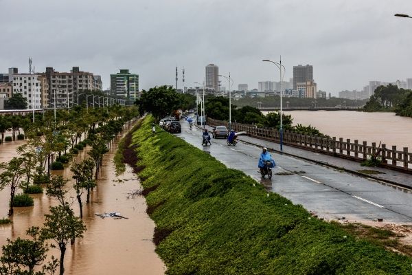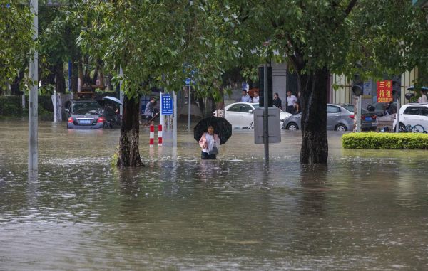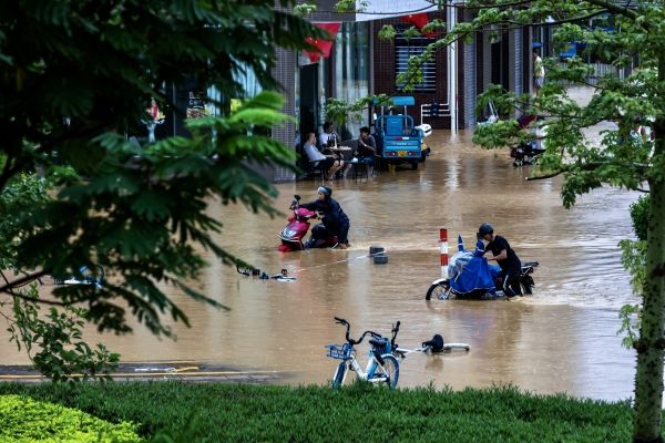 2023年10月20日,小东江广东茂名站出现洪水。群众在回家路上。
