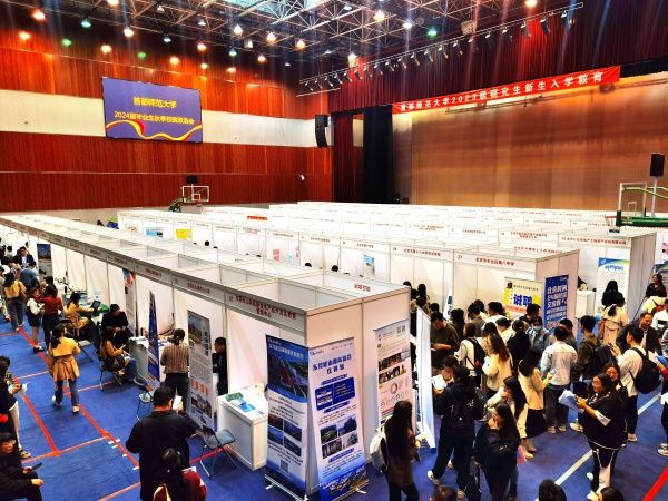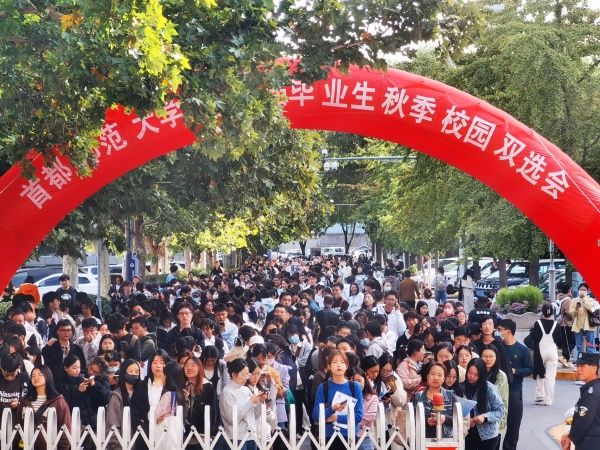 2023年10月19日,首都师范大学,2024届毕业生“校园双选会”在学校体育馆举行。