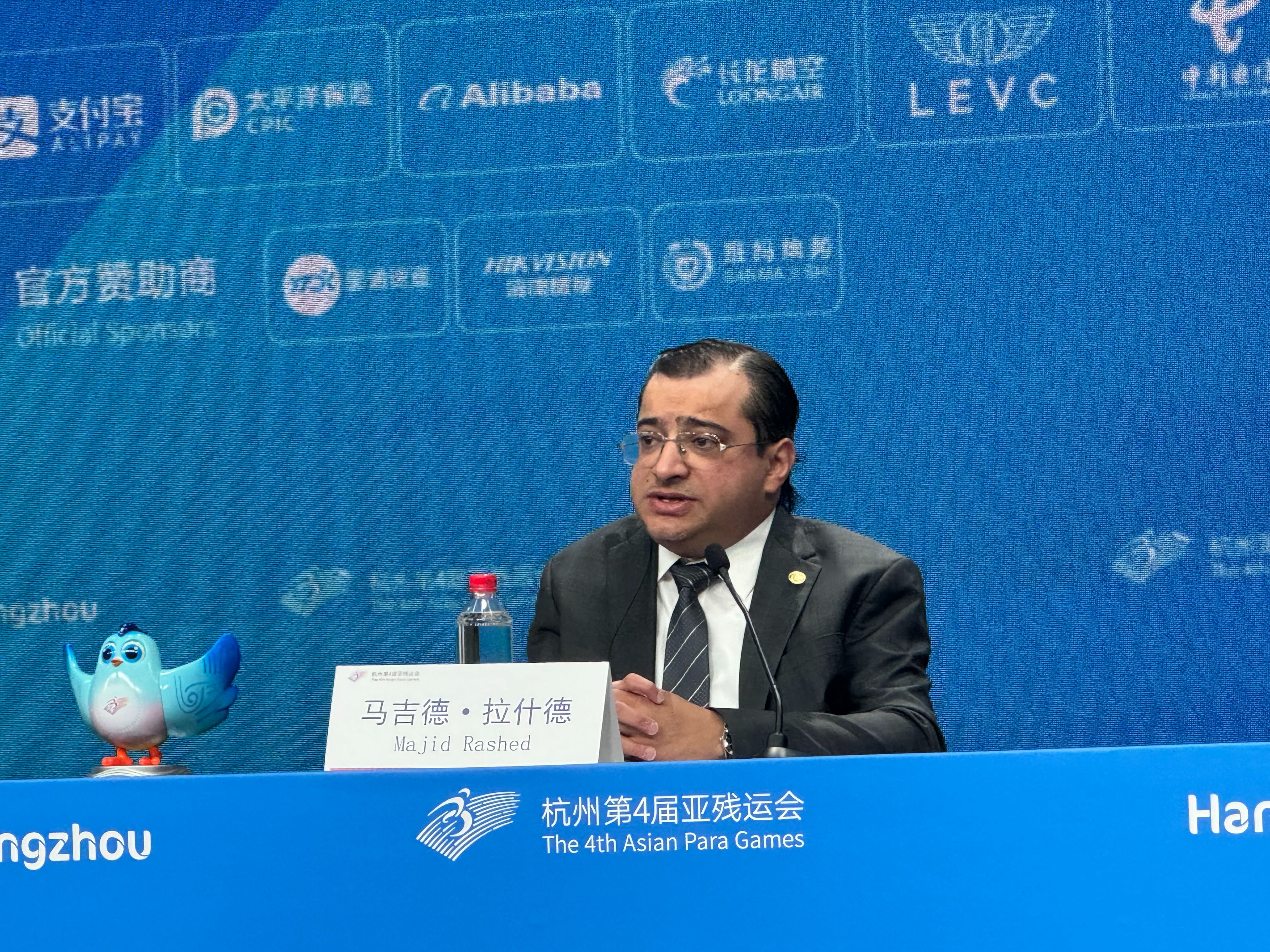 目前,巴以冲突仍在持续,参加亚残运会的巴勒斯坦运动员能否顺利参赛?在10月22日举行的亚残奥委员会与杭州亚残组委联合新闻发布会上,亚残奥委员会主席马吉德·拉什德透露:“在巴以本轮冲突发生前,巴勒斯坦参赛运动员和教练几乎都在位于埃及开罗的训练营训练,因此,他们来杭州并未受到影响,目前他们已经顺利抵达,相信他们已经做好了比赛的准备。”马吉德强调,“但他们现在一定非常痛苦,因为他们的家人正处于战火,相信我们的组委会会给他们提供最合适的比赛环境。”(中青报·中青网记者 梁璇 文并摄)