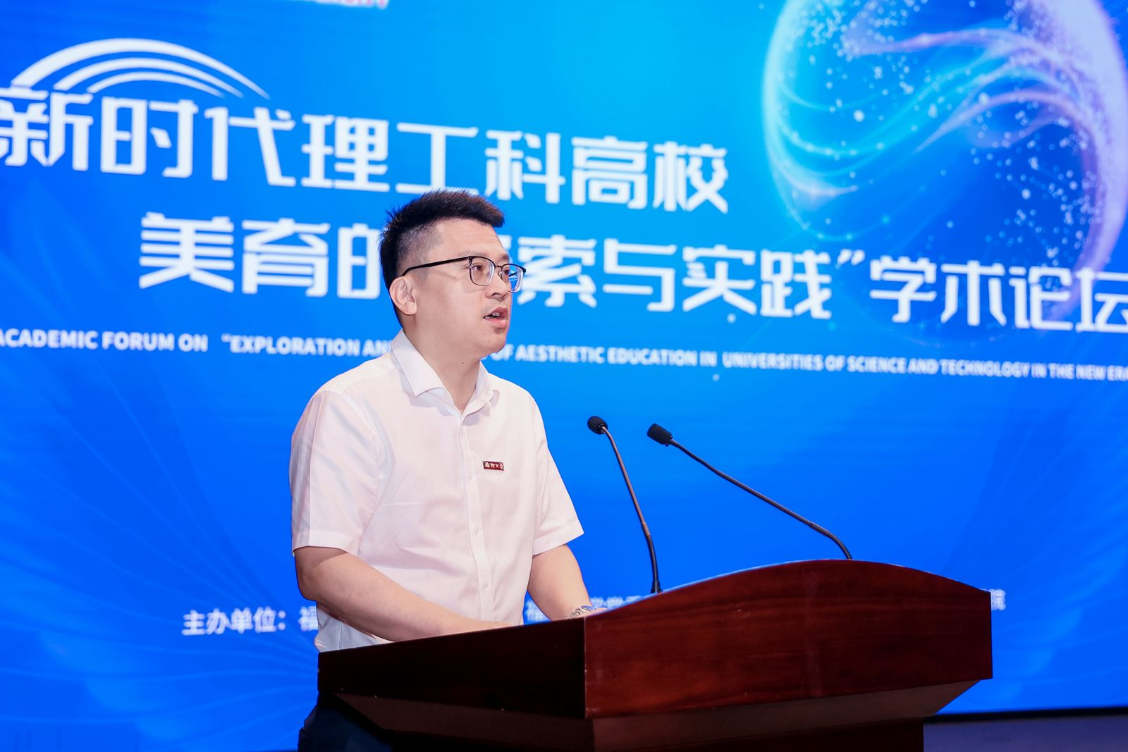 福州大学党委常委、副校长,福州大学美育中心主任郭文忠教授代表美育中心致辞。他说,在当今社会,美育不再局限于传统的艺术领域,而是与科技、工程、设计等学科紧密结合,形成了多元化的美育教育体系,这也是理工科院校美育中心的使命所在。他介绍了福州大学美育中心开展的主要工作:一是重塑美育理念,构建多层次美育课程体系;二是加大资源整合,促进美育教育与专业教育相融合;三是开展校园文化服务,陶冶学生美育素养。