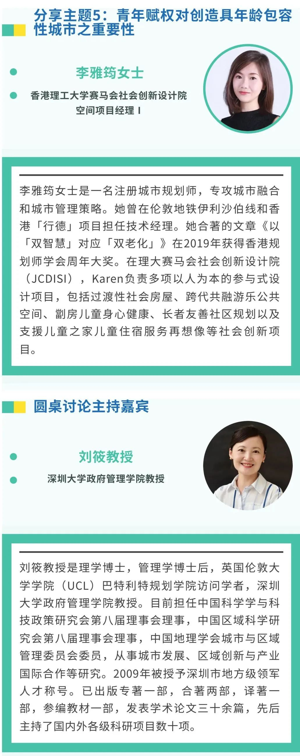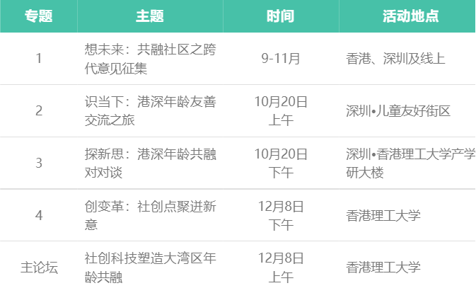 作为论坛的专题活动之一,“探新思:港深年龄共融对对谈”将于10月20日在理大深圳产学研基地正式举行。来自香港、深圳的行业专家、学者将汇聚一堂,通过交流两地开展年龄友善项目的经验,重新想象社区的年龄包容性、探索建立适合所有年龄人士生活的智慧社区。