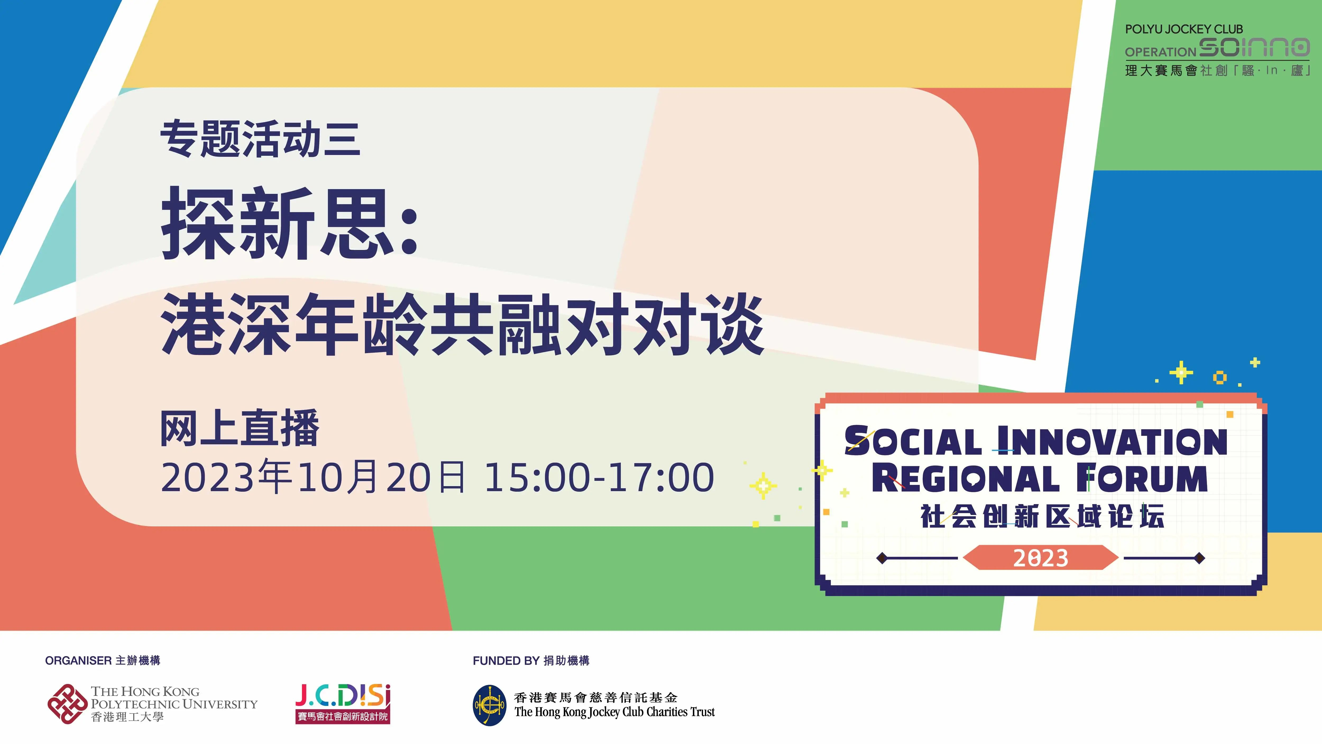 由香港理工大学赛马会社会创新设计院(JCDISI)主办、香港赛马会慈善信托基金捐助的“社会创新区域论坛2023”(SIRF2023)现已拉开帷幕。本届论坛聚焦“以社会与科技创新塑造年龄共融社区”,着眼于以香港和深圳为代表的大湾区城市,从社会与科技创新的交汇点出发,共同构想如何营造友善的、包容不同年龄市民的社区。