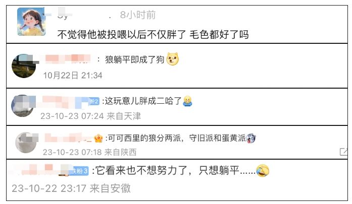 有网友调侃这头狼已经变得