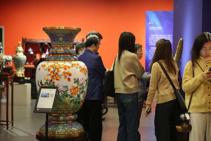 在不久前落幕的第三届“一带一路”国际合作高峰论坛上,人民大会堂贵宾休息区、中国工艺美术馆(中国非物质文化遗产馆)、国家会议中心的非遗展览互动体验区等多个场馆,都出现了景泰蓝的身影。展陈在人民大会堂贵宾休息区的《一路锦绣》山海尊,也出现在本次活动现场。