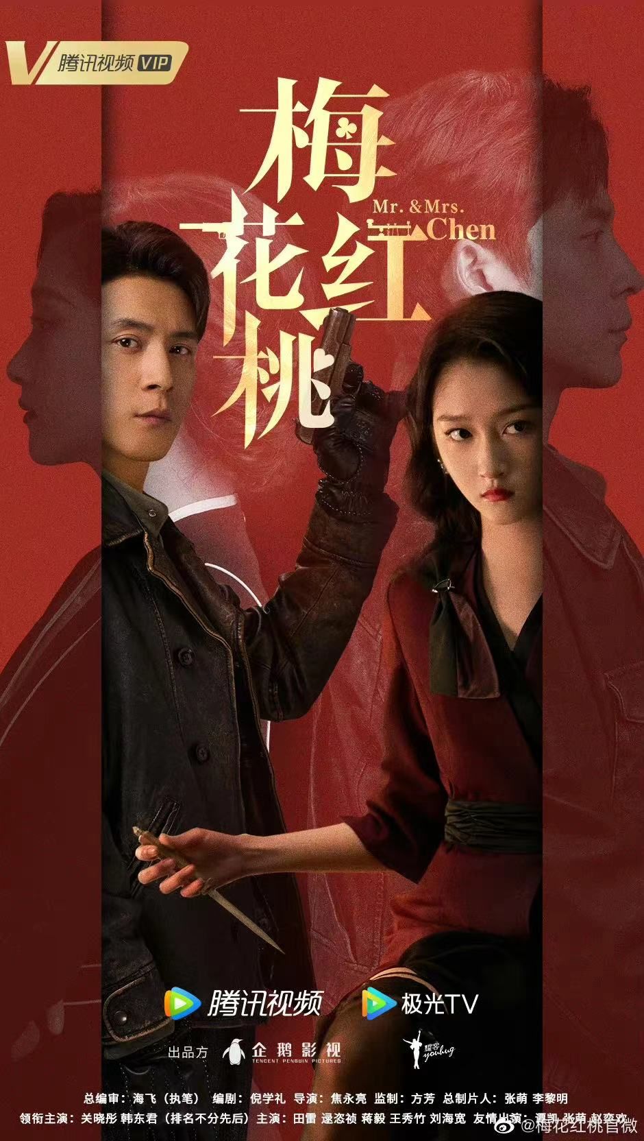 谍战剧《梅花红桃》由海飞担任总编审,焦永亮执导,关晓彤、韩东君等演出。剧中,关晓彤饰演的左双桃表面是豪门闺秀,实则是代号“红桃五”的军统特工,与曾经的恋人陈家平偶遇重逢后潜伏在他身边。韩东君饰演的陈家平代号“梅花四”,他表面放荡不羁,内心则是坚定的革命青年。左双桃、陈家平各自隐藏真实身份,开启“相爱相杀”的婚姻生活,他们之间有属于恋人的欢声笑语、甜蜜瞬间,也有分属不同阵营导致的暗中生死对决,最终左双桃在共产主义信仰的感召下,选择和陈家平一起战斗,二人凭借优秀的特工素养与默契合作,数次与敌人展开智斗。 这部剧拥有当下民国谍战剧的高配置,有著名编剧、导演坐镇,领衔主演关晓彤、韩东君也很具有观众号召力,通过该剧可以看到传统谍战剧创新的一些趋势。《梅花红桃》保留了多重身份、潜伏、极限审讯、暗杀、冒险取情报、密码破译、“假夫妻、真革命”、斗智等传统谍战剧的重要情节元素,但在叙事强度和节奏上做了一些新变化。该剧利用男女主角的不同身份、不同任务目标,不断给他们叠加困难和陷阱,以快节奏、环环相扣的剧情吸引观众。两人在火车站刺杀日本人的任务中相遇后,就不断遭遇日本特务的极限审问、窃听、关系考验等,敌人阴谋丛生,男女主角总是处在危急关口,但他们总能滴水不漏、干干净净地过五关斩六将。比如,两人能在火车站偶遇的极短时间内,一个眼神就默契地“假扮夫妻”,迅速编出全套故事,准备好车票、广告牌、电话号码等信息,接受日本特务的轮番离间审讯也不会暴露自身身份。陈家平能在极限时间内,将暴露行踪的地下党员见面时的危急情形扭转成无良砚台商人和买家的矛盾纠纷,同时还骗了敌人,换取地下党员的安全。